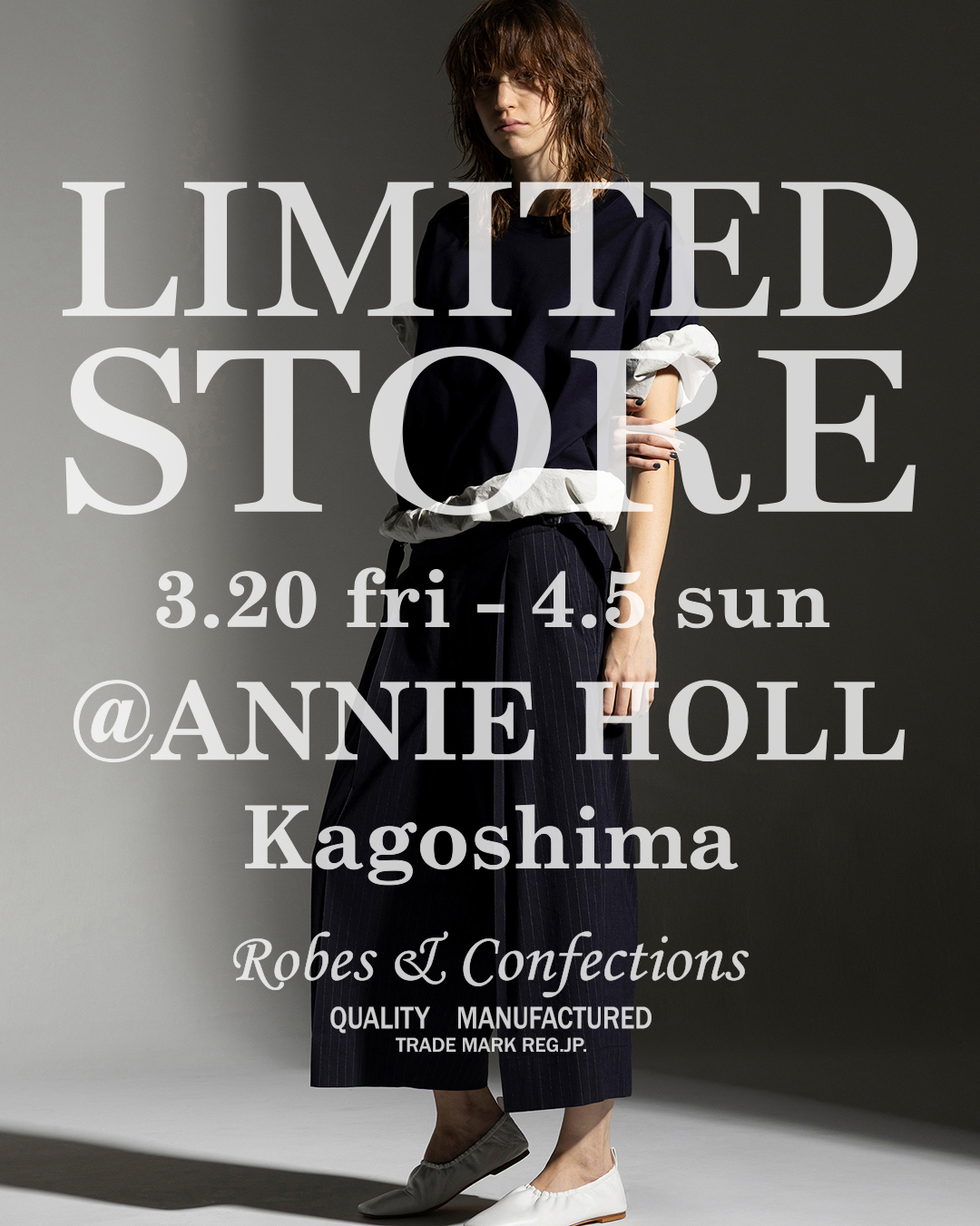 鹿児島市のANNIE HOLL で開催中の LIMITED STORE は4月5日(日)まで。2026 S/S コレクションよりウィメンズの厳選されたアイテムをご覧いただけます。