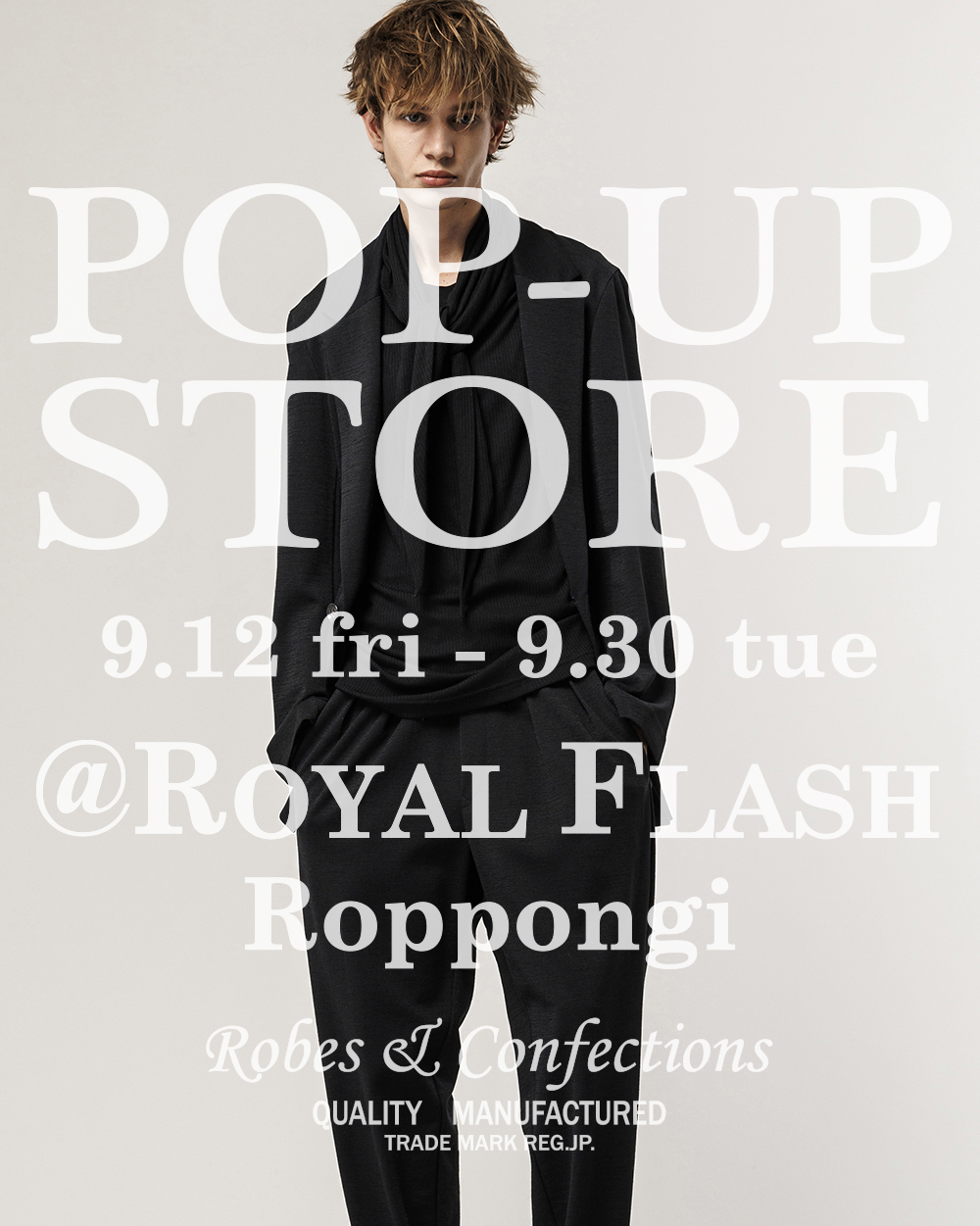 9月12日(金)からROYAL FLASH 六本木店 にてRobes & Confections POP-UP STORE がスタートします。2025-26 A/W コレクションよりウィメンズ・メンズともに厳選されたアイテムをご覧いただけます。