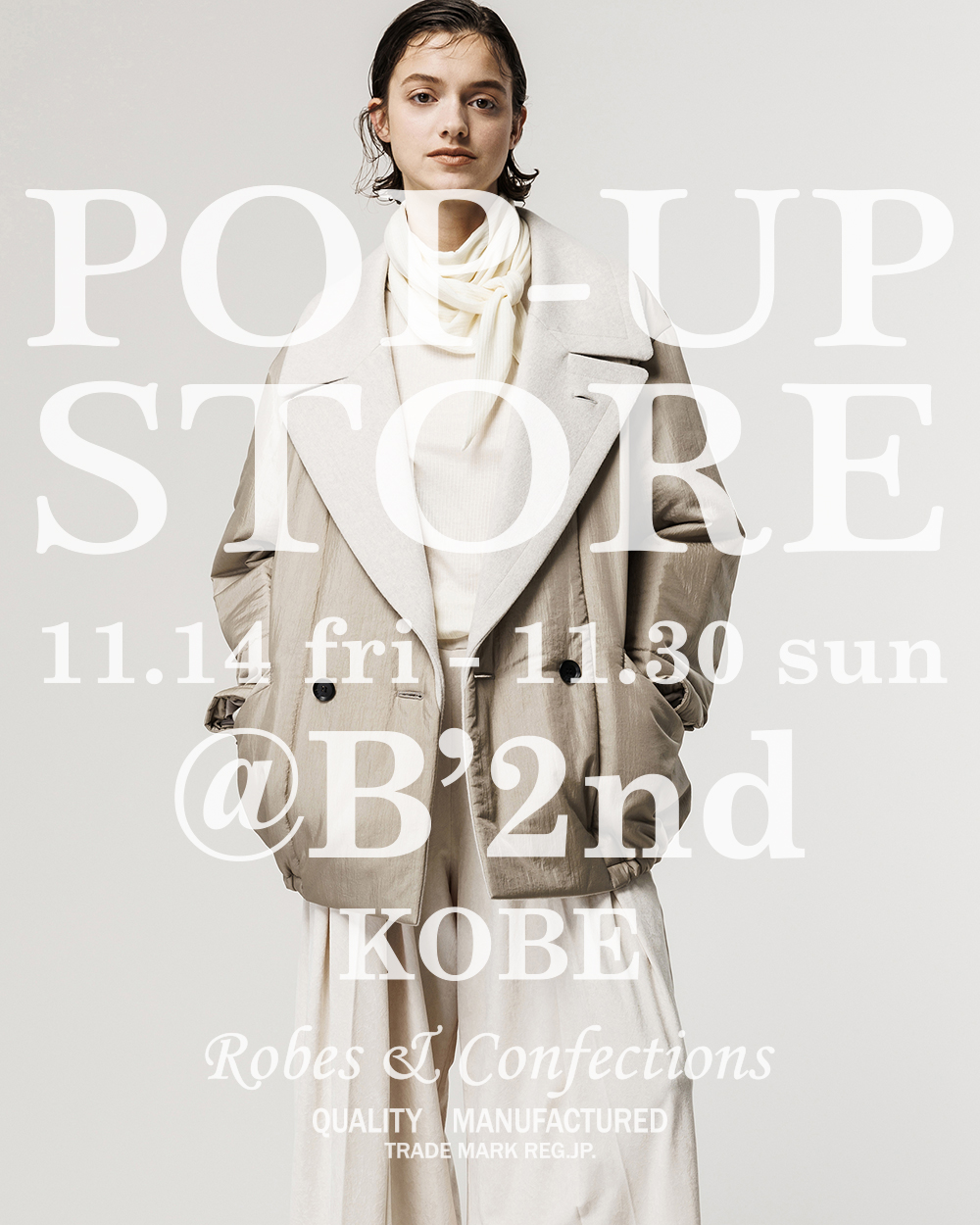 11月14日(金)からB’2nd神戸店 にてRobes & Confections POP-UP STORE がスタートします。2025-26 A/W コレクションよりウィメンズの厳選されたアイテムをご覧いただけます。